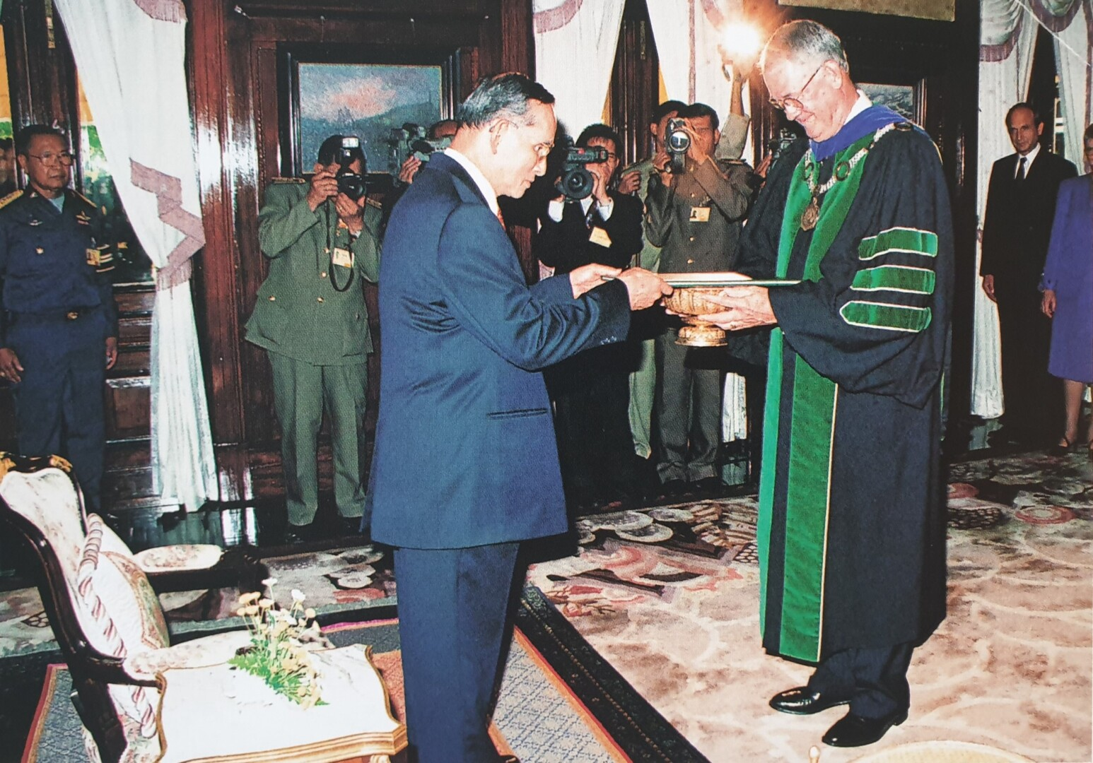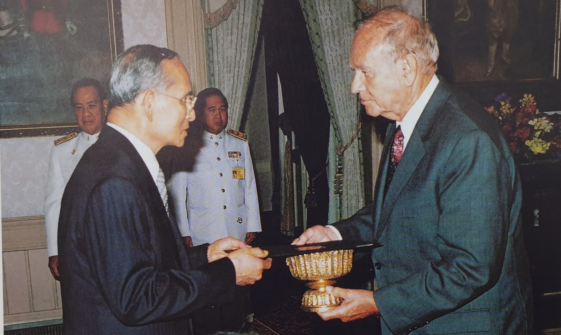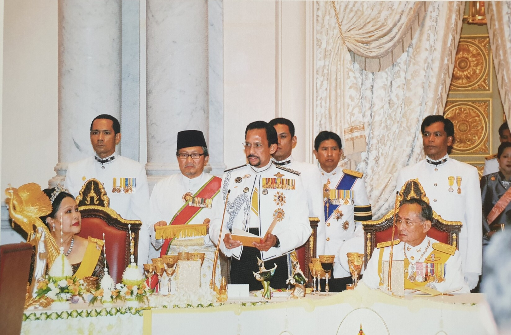 อดุลยเดชมหาราช บรมนาถบพิตร พระประมุขและพระราชวงศ์ต่างประเทศ ๒๕ ประเทศ เสด็จพระราชดำเนินและเสด็จมาทรงร่วมถวายพระพรชัยมงคลแด่พระบาทสมเด็จพระบรมชนกาธิเบศร มหาภูมิพลอดุลยเดชมหาราช บรมนาถบพิตร การนี้ สมเด็จพระราชาธิบดีแห่งบรูไนดารุสซาลาม ทรงเป็นผู้แทนพระประมุขและพระราชวงศ์ต่างประเทศ กล่าวถวายพระพรชัยมงคล เมื่อวันที่ ๑๓ มิถุนายน พุทธศักราช ๒๕๔๙ ณ พระที่นั่งบรมราชสถิตยมโหฬาร ในหมู่พระที่นั่งจักรมหาปราสาท ความตอนหนึ่งว่า