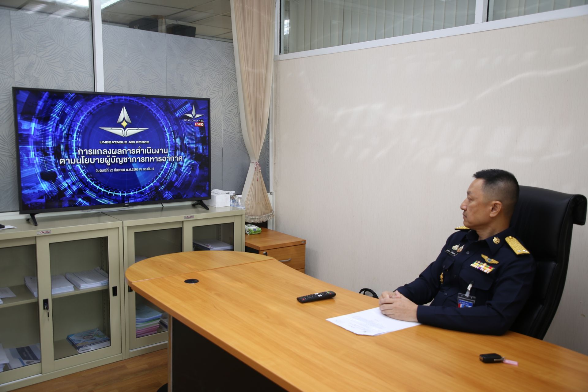 ผู้บัญชาการทหารอากาศกำหนดแถลงผลการดำเนินงานตามนโยบายผู้บัญชาการทหารอากาศ ประจำปี พ.ศ.๒๕๖๗ - ๒๕๖๘ โดยมี พลอากาศโท อิทธิกร พงศ์อัจฉรีย์ ปลัดบัญชีทหารอากาศ เข้าร่วมงานฯ เมื่อวันจันทร์ที่ ๒๒ กันยายน ๒๕๖๘ เวลา ๐๙๔๕ ณ ฝูงบิน ๔๐๓ กองบิน ๔ จว.นครสวรรค์ และข้าราชการของสำนักงานปลัดบัญชีทหารอากาศ เข้ารับฟังงานแถลงผลการดำเนินงานฯ ทาง Cable TV ณ สำนักงานปลัดบัญชีทหารอากาศ