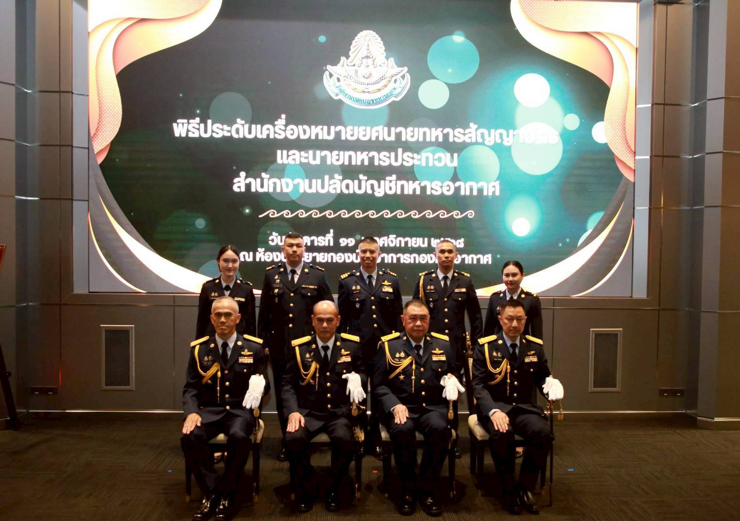 พลอากาศโท อิทธิกร พงศ์อัจฉรีย์ ปลัดบัญชีทหารอากาศ เป็นประธานในพิธีประดับเครื่องหมายยศ ให้กับนายทหารชั้นสัญญาบัตร และนายทหารชั้นประทวน สังกัดสำนักงานปลัดบัญชีทหารอากาศ จำนวน ๑๓ คน ที่ได้รับพระราชทานเลื่อนยศสูงขึ้น โดยมีหัวหน้าหน่วยขึ้นตรง ของสำนักงานปลัดบัญชีทหารอากาศ เข้าร่วมพิธี ณ ห้องบรรยาย บก.ทอ. เมื่อวันอังคารที่ ๑๑ พฤศจิกายน พ.ศ.๒๕๖๘