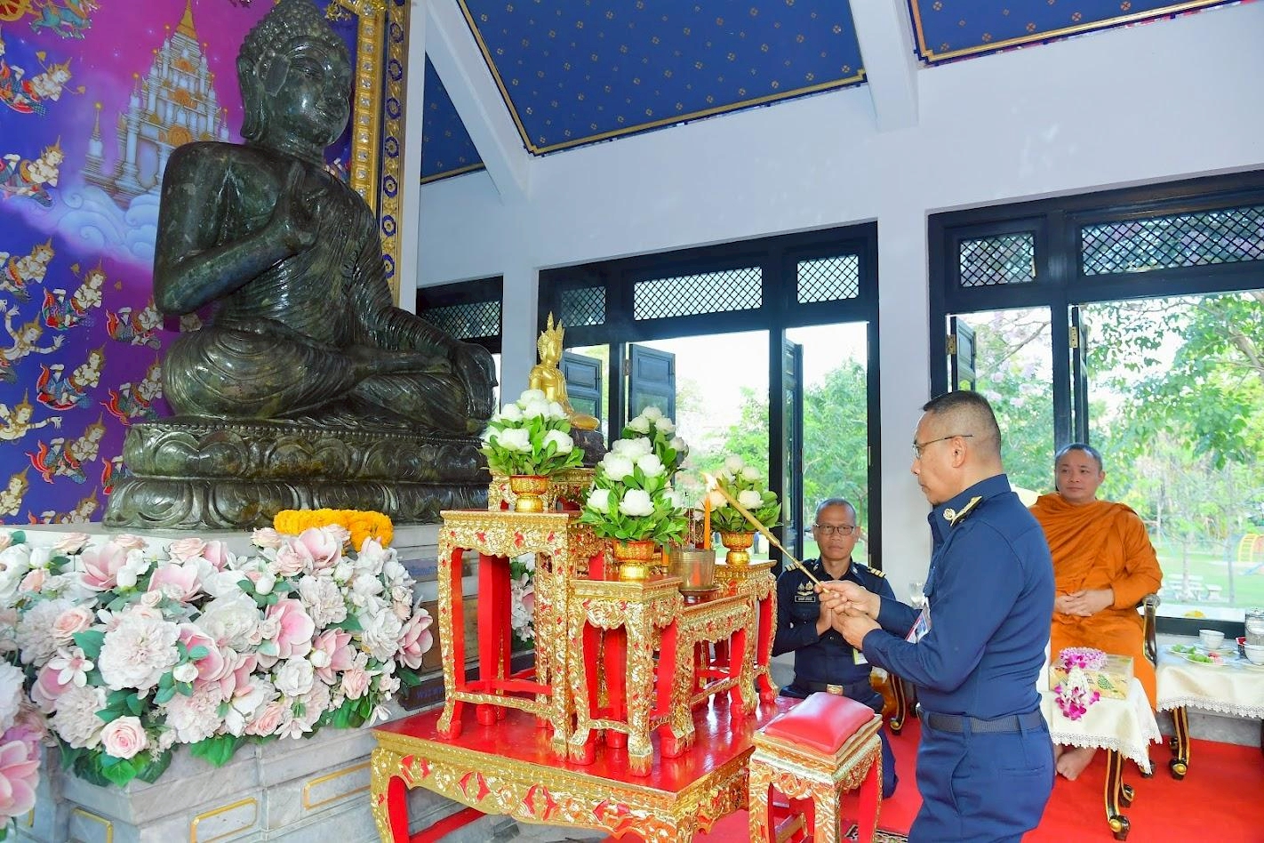 พลอากาศโท อิทธิกร พงศ์อัจฉรีย์ ปลัดบัญชีทหารอากาศ พร้อมด้วยคุณจารุณีย์ พงศ์อัจฉรีย์ ภริยาปลัดบัญชีทหารอากาศ เข้าร่วมพิธีพุทธบูชาเนื่องในวันมาฆบูชา ประจำปี ๒๕๖๙ โดยมี พลอากาศเอก ไวพจน์ เกิงฝาก รองผู้บัญชาการทหารอากาศ พร้อมด้วย นาวาอากาศเอกหญิง วราภรณ์ เกิงฝาก อุปนายกสมาคมคู่สมรสทหารอากาศ เป็นประธานในพิธีพุทธบูชาเนื่องในวันมาฆบูชา ณ หอพระพุทธเมตตานภากาศประทานพร สวนสุขภาพท่าดินแดง ดอนเมือง กรุงเทพฯ เมื่อวันจันทร์ที่ ๒ มีนาคม ๒๕๖๙ โดยมีนายทหารชั้นผู้ใหญ่ กำลังพลของกองทัพอากาศ และสมาชิกสมาคมคู่สมรสทหารอากาศ เข้าร่วมพิธี ในโอกาสนี้ รองผู้บัญชาการทหารอากาศ ได้จุดธูปเทียนบูชาพระรัตนตรัยและถวายเครื่องไทยธรรมแด่พระสงฆ์ พร้อมร่วมรับฟังโอวาทธรรม สวดมนต์แผ่เมตตา กล่าวคำถวายพระราชกุศล จากนั้น เดินนำขบวนประทักษิณรอบหอพระพุทธเมตตานภากาศประทานพร และทำบุญตักบาตรร่วมกับกำลังพลของกองทัพอากาศ