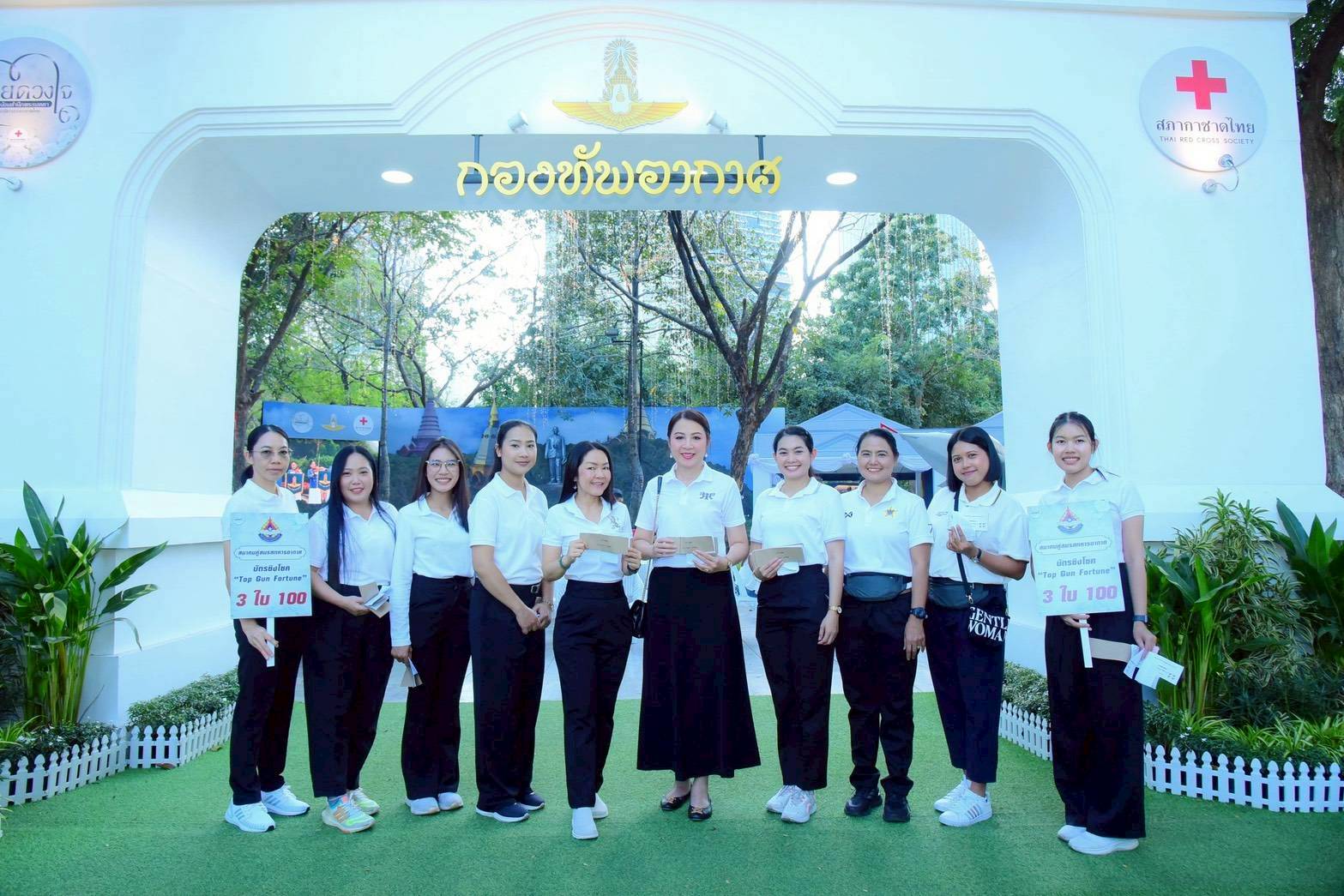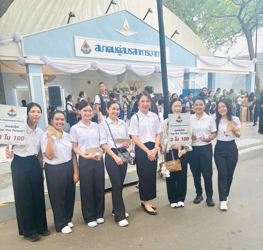 คุณจารุณีย์ พงศ์อัจฉรีย์ ภริยา ปช.ทอ.ในฐานะคณะกรรมการบริหารสมาคมคู่สมรสกองทัพอากาศ และข้าราชการ สปช.ทอ. ได้ร่วมปฏิบัติหน้าที่ ณ ร้านกองทัพอากาศ และร้านสมาคมคู่สมรสกองทัพอากาศ ในงานกาชาด ประจำปี ๒๕๖๘ เมื่อ ๑๑ - ๒๑ ธ.ค.๖๘ ณ สวนลุมพินี