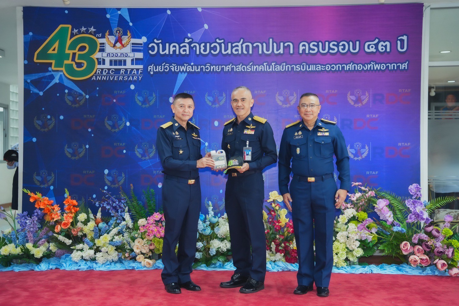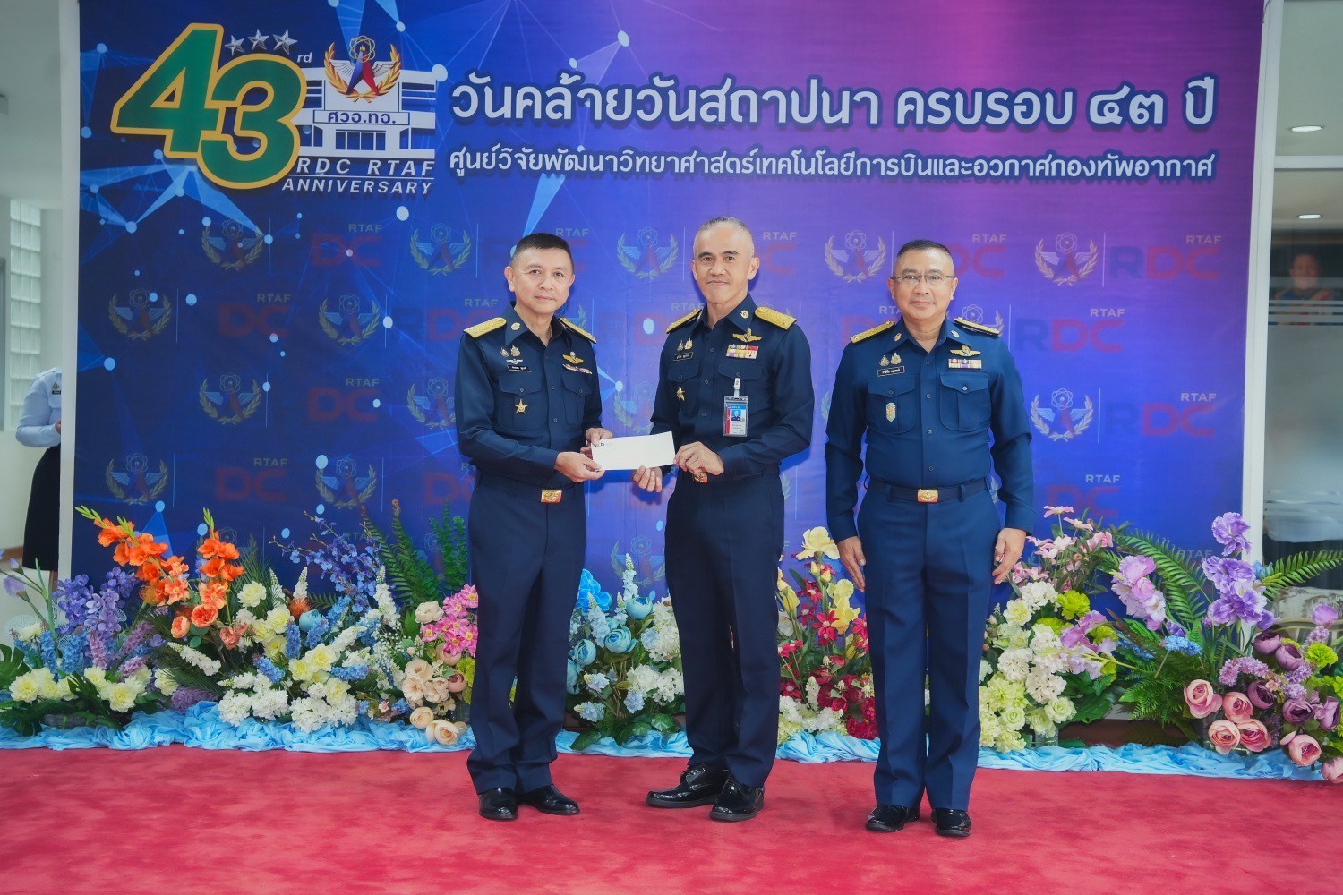 ปลัดบัญชีทหารอากาศ ได้มอบหมายให้ พลอากาศตรี ภูวไนย บุญวรรณ ผู้อำนวยการสำนักบริหารทรัพยากร สำนักงานปลัดบัญชีทหารอากาศ เข้าร่วมงานวันคล้ายวันสถาปนา ศูนย์วิจัยพัฒนาวิทยาศาสตร์เทคโนโลยีการบินและอวกาศกองทัพอากาศ ครบรอบ ๔๓ ปี โดยมี พลอากาศตรี ชเนนทร์ สุขวารี รองผู้อำนวยการศูนย์วิจัยพัฒนาวิทยาศาสตร์เทคโนโลยีการบินและอวกาศกองทัพอากาศ ให้การต้อนรับ เมื่อวันศุกร์ที่ ๑๒ กันยายน ๒๕๖๘ เวลา ๐๙๓๐ ณ หอประชุมศูนย์วิจัยพัฒนาวิทยาศาสตร์เทคโนโลยีการบินและอวกาศกองทัพอากาศ