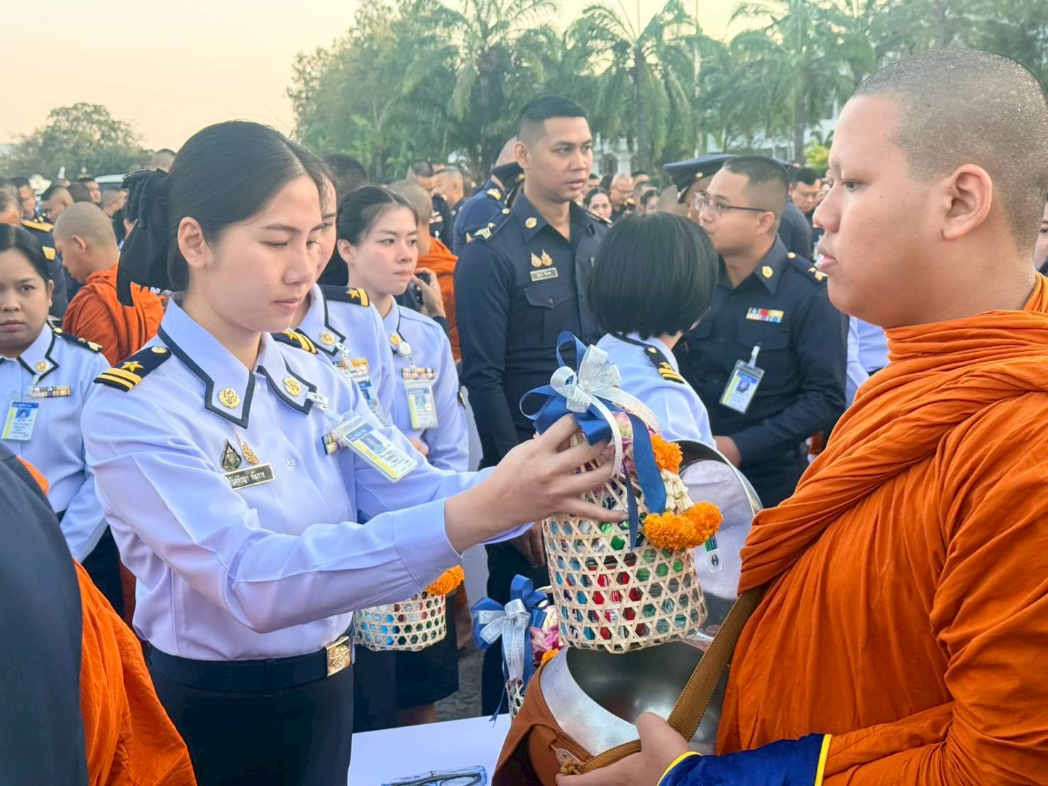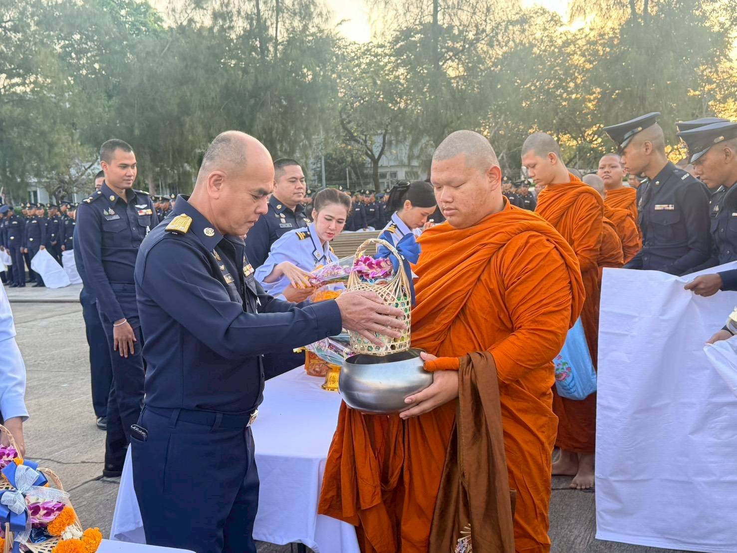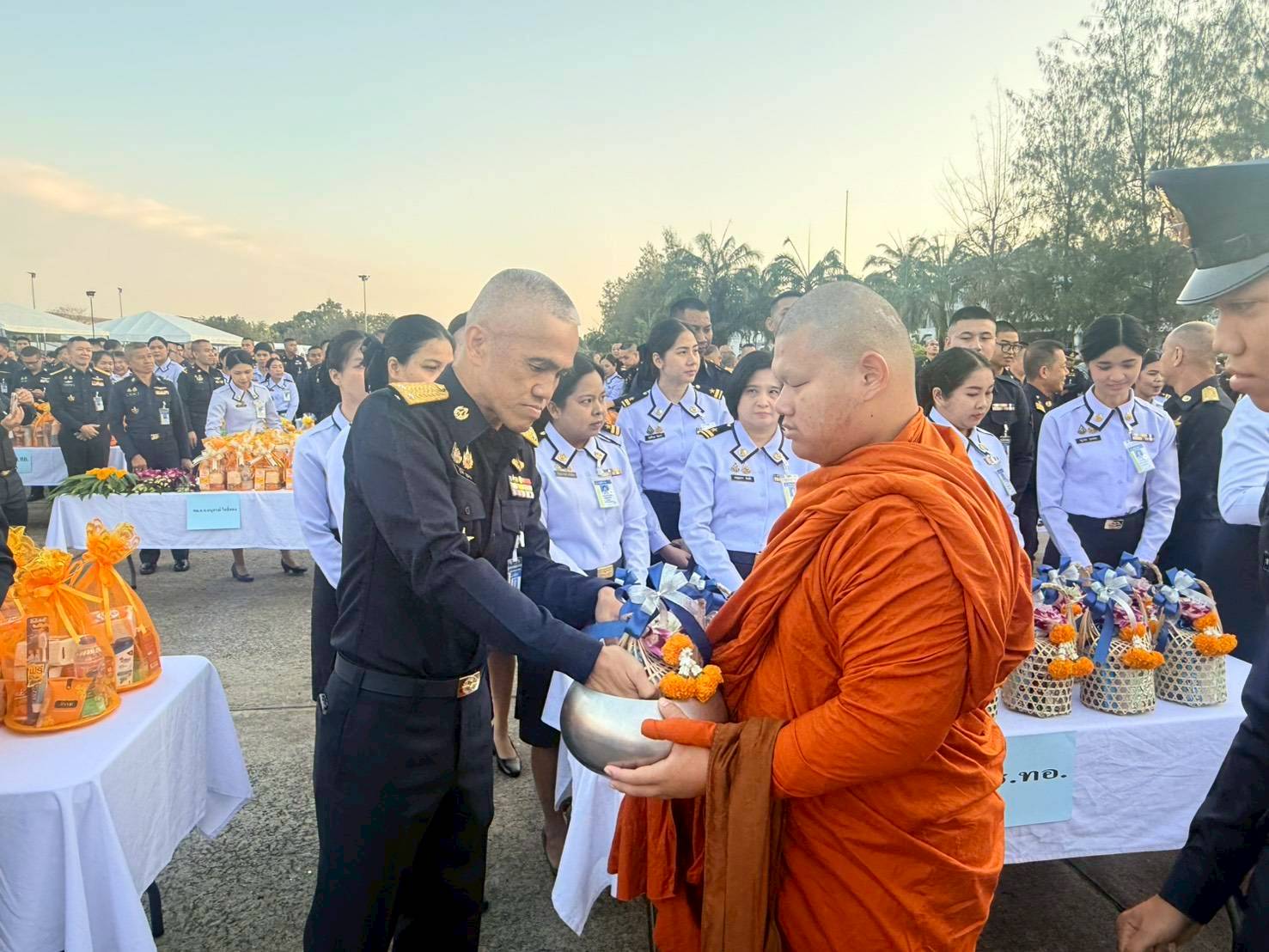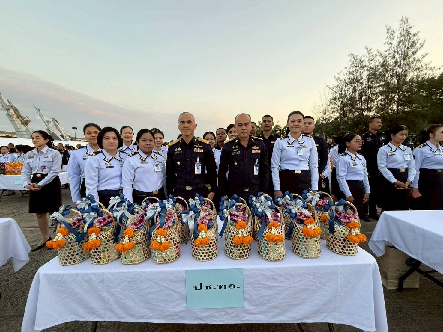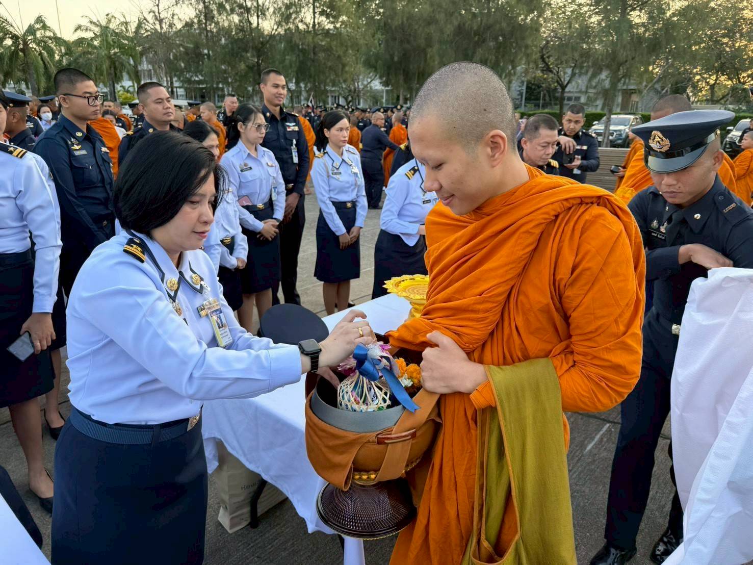 พลอากาศตรี เอนก สุขวิลัย รองปลัดบัญชีทหารอากาศ และ พลอากาศตรี ภูวไนย บุญวรรณ ผู้อำนวยการสำนักบริหารทรัพยากร สำนักงานปลัดบัญชีทหารอากาศ พร้อมด้วยข้าราชการ สำนักงานปลัดบัญชีทหารอากาศ ร่วมทำบุญตักบาตรวันขึ้นปีใหม่ พ.ศ.๒๕๖๙ ณ อาคารรณนภากาศ อุทยานการบิน ทอ.เมื่อวันพุธที่ ๗ มกราคม ๒๕๖๙ โดยมี พลอากาศเอก เสกสรร คันธา ผู้บัญชาการทหารอากาศ เป็นประธาน